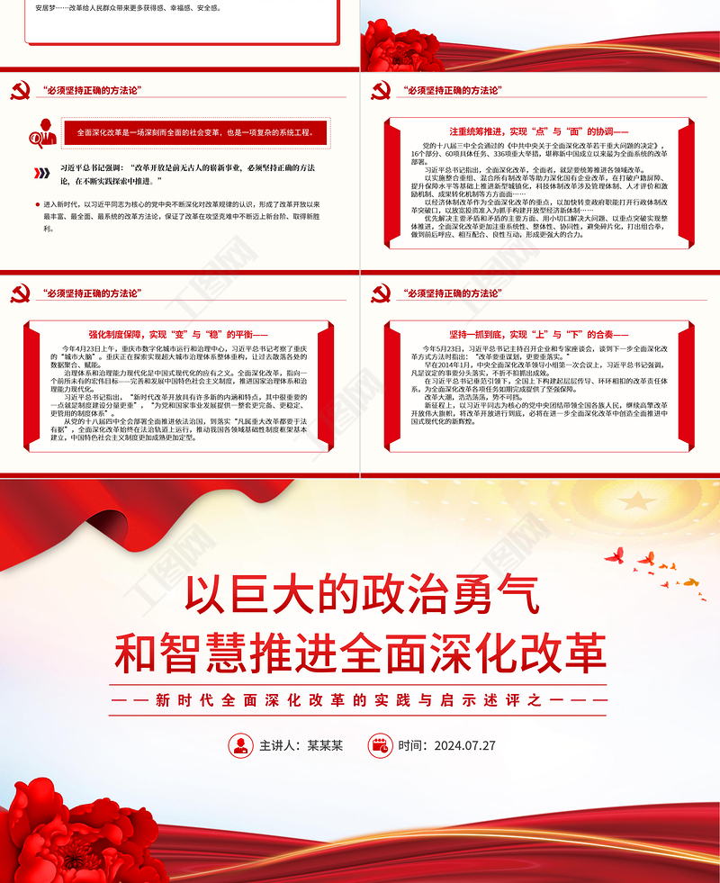 主講人:某某某時間:2024.07.27以巨大的政治勇氣 和智慧推進全面深化改革
