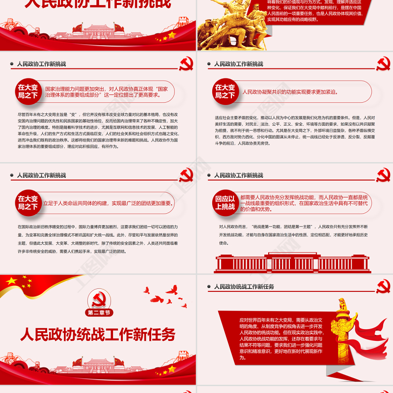 工圖網(wǎng)提供新時代人民政協(xié)統(tǒng)戰(zhàn)功能再認(rèn)識PPT紅色黨政風(fēng)黨員干部學(xué)習(xí)教育專題黨課課件模板供會員免費下載。更多精彩黨課PPT素材,盡在工圖網(wǎng)。