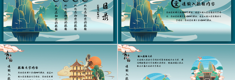 藍(lán)色,國(guó)潮,中式,中國(guó)風(fēng),古典,文化,傳統(tǒng),手繪,插畫(huà),古建筑,古風(fēng),建筑,主題,PPT,模板 Array