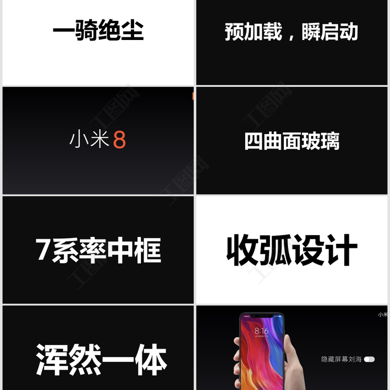 炫酷小米8發(fā)布會快閃動畫PPT模板