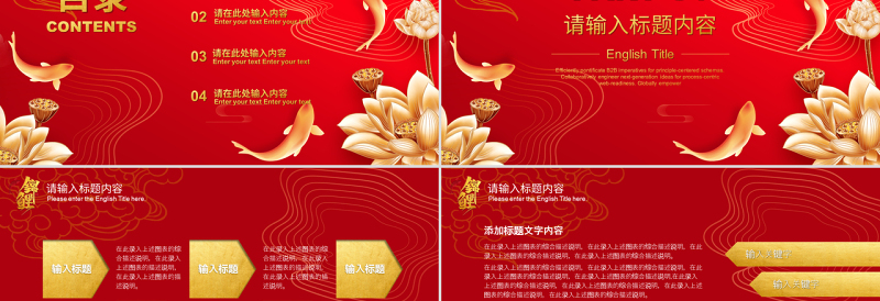 紅色金色經(jīng)典錦鯉國(guó)潮主題PPT模板