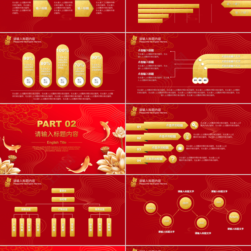 紅色,金色,經(jīng)典,錦鯉,國(guó)潮,中國(guó)風(fēng),中式,創(chuàng)意,企業(yè)文化,工作總結(jié),工作計(jì)劃,通用,PPT,模板 Array