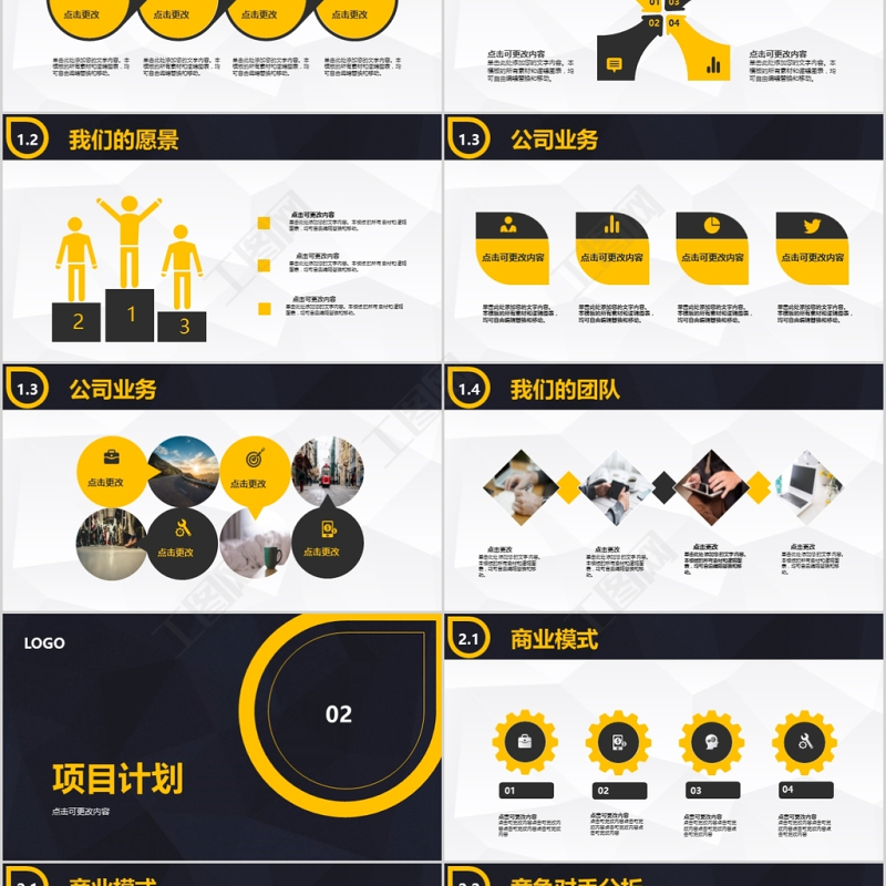 工圖網(wǎng)提供橙黑雙色簡約沉穩(wěn)商業(yè)創(chuàng)業(yè)計(jì)劃書ppt模板供會員免費(fèi)下載。更多精彩黨課PPT素材,盡在工圖網(wǎng)。