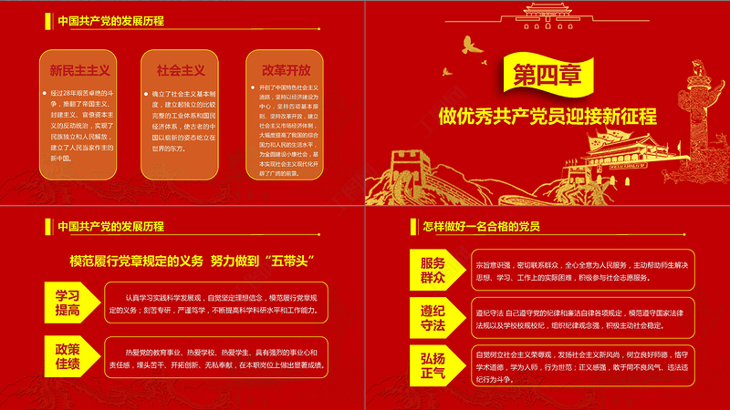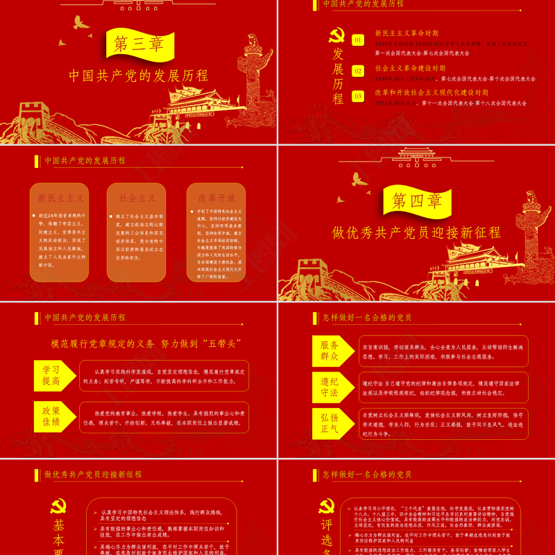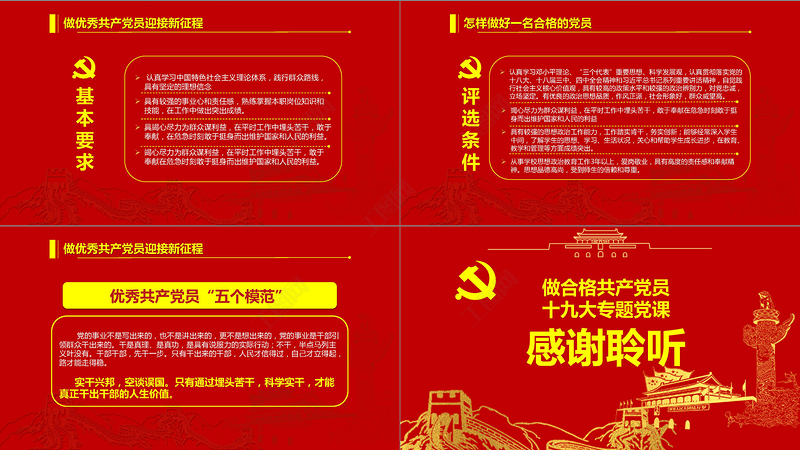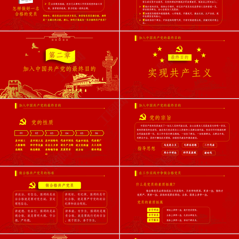 黨政PPT,黨課PPT,做合格共產(chǎn)黨員,紅色PPT,金色 Array