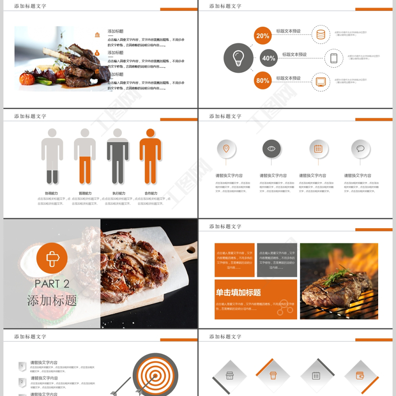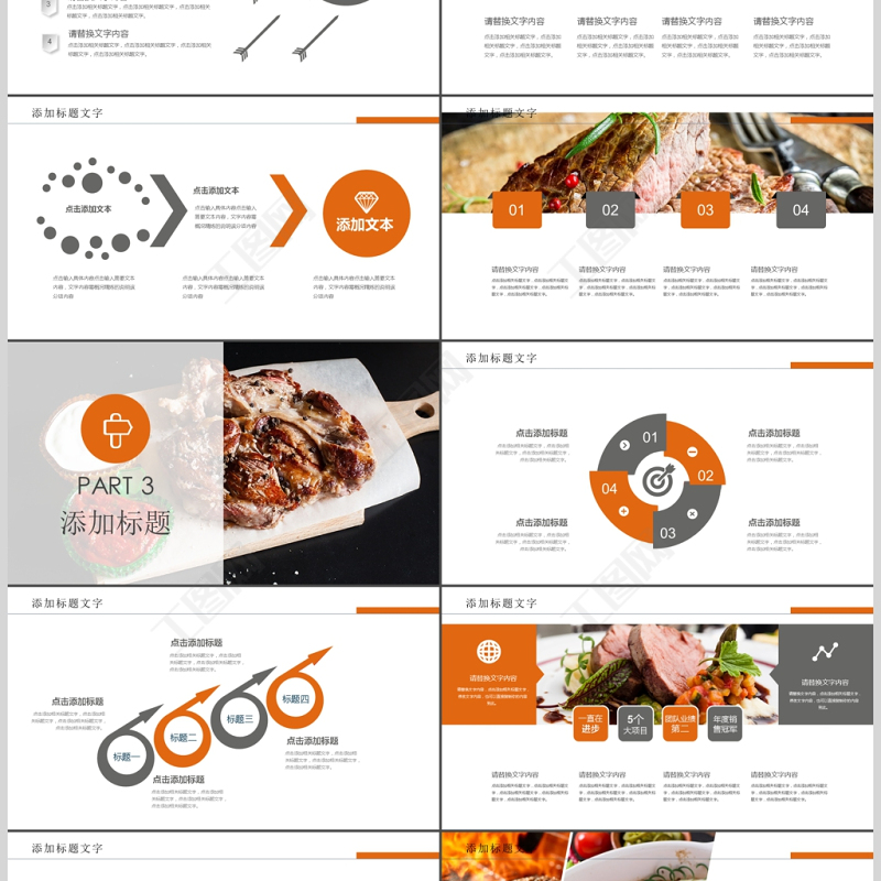 2018餐飲美食西餐廳介紹PPT模板 Array