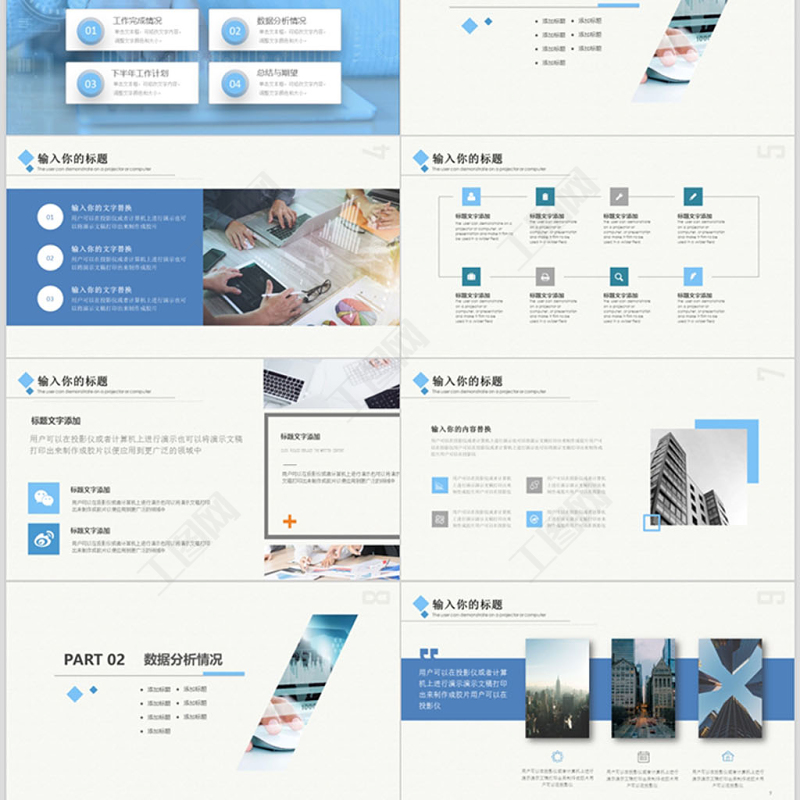 <p>藍(lán)色商務(wù)風(fēng)格工作總結(jié)PPT模板匯報(bào)人:可可樂(lè)適用于工作匯報(bào)/年終總結(jié)/工作計(jì)劃等</p><br><p>目 錄01單擊文本框,可修改文字內(nèi)容,調(diào)整文字顏色和大小。工作完成情況02單擊文本框,可修改文字內(nèi)容,調(diào)整文字顏色和大小。數(shù)據(jù)分析情況03單擊文本框,可修改文字內(nèi)容,調(diào)整文字顏色和大小。下半年工作計(jì)劃04單擊文本框,可修改文字內(nèi)容,調(diào)整文字顏色和大小??偨Y(jié)與期望CONTNET</p><br><p>延遲PART 01工作完成情況</p><br><p>延遲010203</p><br><p>延遲</p><br><p></p><br><p>用戶(hù)可以在投影儀或者計(jì)算機(jī)上進(jìn)行演示演示文稿打印出來(lái)制作成膠片用戶(hù)可以在投影儀用戶(hù)可以在投影儀或者計(jì)算機(jī)上進(jìn)行演示演示文稿打印出來(lái)制作成膠片用戶(hù)可以在投影儀用戶(hù)可以在投影儀或者計(jì)算機(jī)上進(jìn)行演示演示文稿打印出來(lái)制作成膠片用戶(hù)可以在投影儀用戶(hù)可以在投影儀或者計(jì)算機(jī)上進(jìn)行演示演示文稿打印出來(lái)制作成膠片用戶(hù)可以在投影儀</p><br><p>延遲PART 02數(shù)據(jù)分析情況</p><br><p>9用戶(hù)可以在投影儀或者計(jì)算機(jī)上進(jìn)行演示演示文稿打印出來(lái)制作成膠片用戶(hù)可以在投影儀用戶(hù)可以在投影儀或者計(jì)算機(jī)上進(jìn)行演示演示文稿打印出來(lái)制作成膠片用戶(hù)可以在投影儀用戶(hù)可以在投影儀或者計(jì)算機(jī)上進(jìn)行演示演示文稿打印出來(lái)制作成膠片用戶(hù)可以在投影儀用戶(hù)可以在投影儀或者計(jì)算機(jī)上進(jìn)行演示演示文稿打印出來(lái)制作成膠片用戶(hù)可以在投影儀</p><br><p></p><br><p>用戶(hù)可以在投影儀或者計(jì)算機(jī)上進(jìn)行演示也可以將演示文稿打印出來(lái)制作成膠片以便應(yīng)用用戶(hù)可以在投影儀或者計(jì)算機(jī)上進(jìn)行演示也可以將演示文稿打印出來(lái)制作成膠片以便應(yīng)用用戶(hù)可以在投影儀或者計(jì)算機(jī)上進(jìn)行演示也可以將演示文稿打印出來(lái)制作成膠片以便應(yīng)用用戶(hù)可以在投影儀或者計(jì)算機(jī)上進(jìn)行演示也可以將演示文稿打印出來(lái)制作成膠片以便應(yīng)用用戶(hù)可以在投影儀或者計(jì)算機(jī)上進(jìn)行演示也可以將演示文稿打印出來(lái)制作成膠片以便應(yīng)用用戶(hù)可以在投影儀或者計(jì)算機(jī)上進(jìn)行演示也可以將演示文稿打印出來(lái)制作成膠片以便應(yīng)用用戶(hù)可以在投影儀或者計(jì)算機(jī)上進(jìn)行演示也可以將演示文稿打印出來(lái)制作成膠片以便應(yīng)用用戶(hù)可以在投影儀或者計(jì)算機(jī)上進(jìn)行演示也可以將演示文稿打印出來(lái)制作成膠片以便應(yīng)用你的標(biāo)題 1 你的標(biāo)題 2 你的標(biāo)題 3 你的標(biāo)題 4 </p><br><p>您的內(nèi)容打在這里,或者通過(guò)復(fù)制您的文本后,在此框中選擇粘貼,并選擇只保留文字。您的內(nèi)容打在這里,或者通過(guò)通過(guò)復(fù)制您的文本。填寫(xiě)段落標(biāo)題192,058,473您的內(nèi)容打在這里,或者通過(guò)復(fù)制您的文本后,在此框中選擇粘貼,并選擇只保留文字。填寫(xiě)小標(biāo)題</p><br><p>INSERTTITLETITLE GOES HERELorem ipsum dolor sit amet, consectetur adipiscing elitTITLE GOES HERELorem ipsum dolor sit amet, consectetur adipiscing elitTITLE GOES HERELorem ipsum dolor sit amet, consectetur adipiscing elitTITLE GOES HERELorem ipsum dolor sit amet, consectetur adipiscing elitTITLE GOES HERELorem ipsum dolor sit amet, consectetur adipiscing elitTITLE GOES HERELorem ipsum dolor sit amet, consectetur adipiscing elit13</p><br><p>延遲PART 03下半年工作計(jì)劃</p><br><p>相關(guān)標(biāo)題文字點(diǎn)擊此處添加文本信息。標(biāo)題數(shù)字等都可以通過(guò)點(diǎn)擊和重新輸入進(jìn)行更改,頂部“開(kāi)始”面板中可以對(duì)字體、字號(hào)、顏色、行距等進(jìn)行修改。建議正文10號(hào)字,1.3倍字間距。點(diǎn)擊此處添加文本信息。標(biāo)題數(shù)字等都可以通過(guò)點(diǎn)擊和重新輸入進(jìn)行更改,頂部“開(kāi)始”面板中可以對(duì)字體、字號(hào)、顏色、行距等進(jìn)行修改。建議正文10號(hào)字,1.3倍字間距。點(diǎn)擊此處添加文本信息。標(biāo)題數(shù)字等都可以通過(guò)點(diǎn)擊和重新輸入進(jìn)行更改,頂部“開(kāi)始”面板中可以對(duì)字體、字號(hào)、顏色、行距等進(jìn)行修改。建議正文10號(hào)字,1.3倍字間距。點(diǎn)擊此處添加文本信息。標(biāo)題數(shù)字等都可以通過(guò)點(diǎn)擊和重新輸入進(jìn)行更改,頂部“開(kāi)始”面板中可以對(duì)字體、字號(hào)、顏色、行距等進(jìn)行修改。建議正文10號(hào)字,1.3倍字間距。</p><br><p></p><br><p>用戶(hù)可以在投影儀或者計(jì)算機(jī)上進(jìn)行演示也可以將演示文稿打印出來(lái)制作成膠片以便應(yīng)用到更廣泛的領(lǐng)域中</p><br><p>標(biāo)題文字添加用戶(hù)可以在投影儀或者計(jì)算機(jī)上進(jìn)行演示也可以將演示標(biāo)題文字添加用戶(hù)可以在投影儀或者計(jì)算機(jī)上進(jìn)行演示也可以將演示標(biāo)題文字添加用戶(hù)可以在投影儀或者計(jì)算機(jī)上進(jìn)行演示也可以將演示標(biāo)