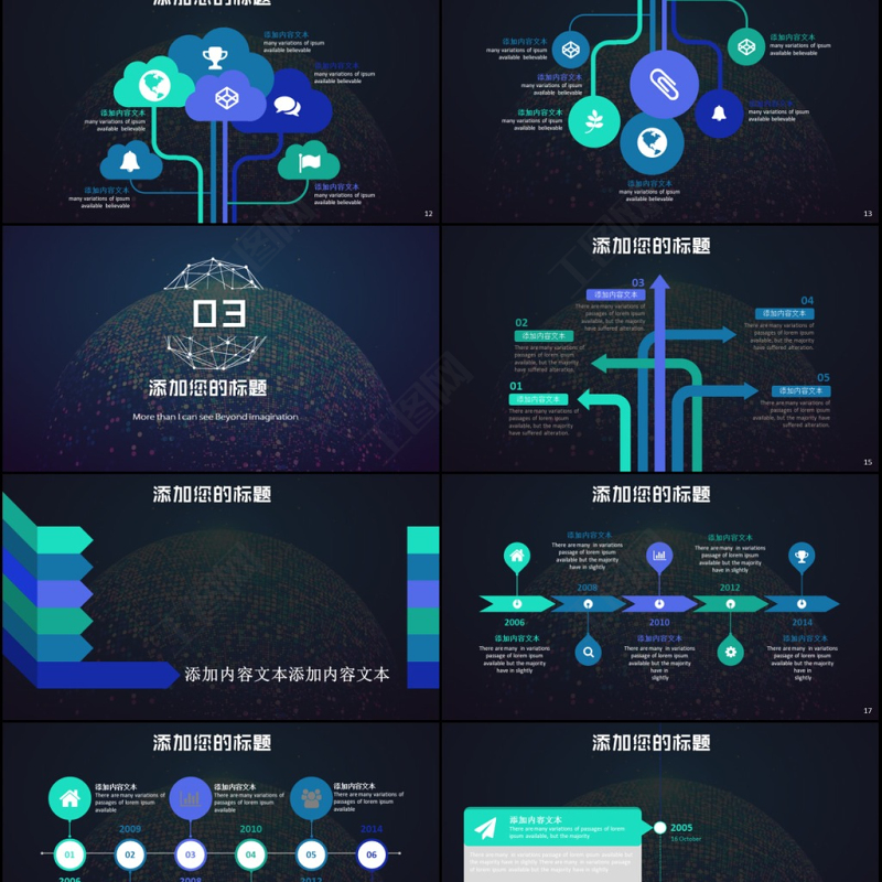 云計(jì)算大數(shù)據(jù)互聯(lián)網(wǎng)物聯(lián)網(wǎng)商務(wù)PPT模板 Array