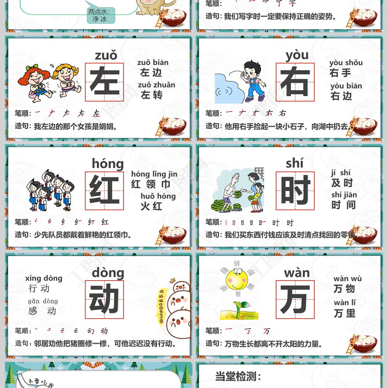 當堂檢測:左( ) 紅( ) 右( ) 江( ) 時( ) 字( ) 過( ) 學( )