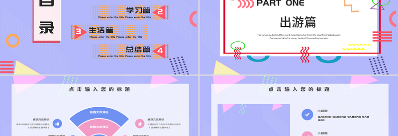 粉紫色孟菲斯風通用PPT模板