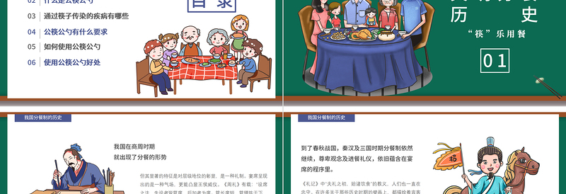 目錄01我國分餐制的歷史02什么是公筷公勺03通過筷子傳染的疾病有哪些04公筷公勺有什么要求05如何使用公筷公勺06使用公筷公勺好處