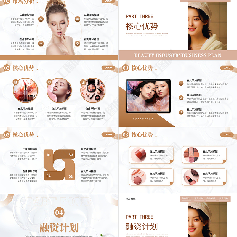 商業(yè)計(jì)劃書PPT美拉德風(fēng)美容行業(yè)模板 Array