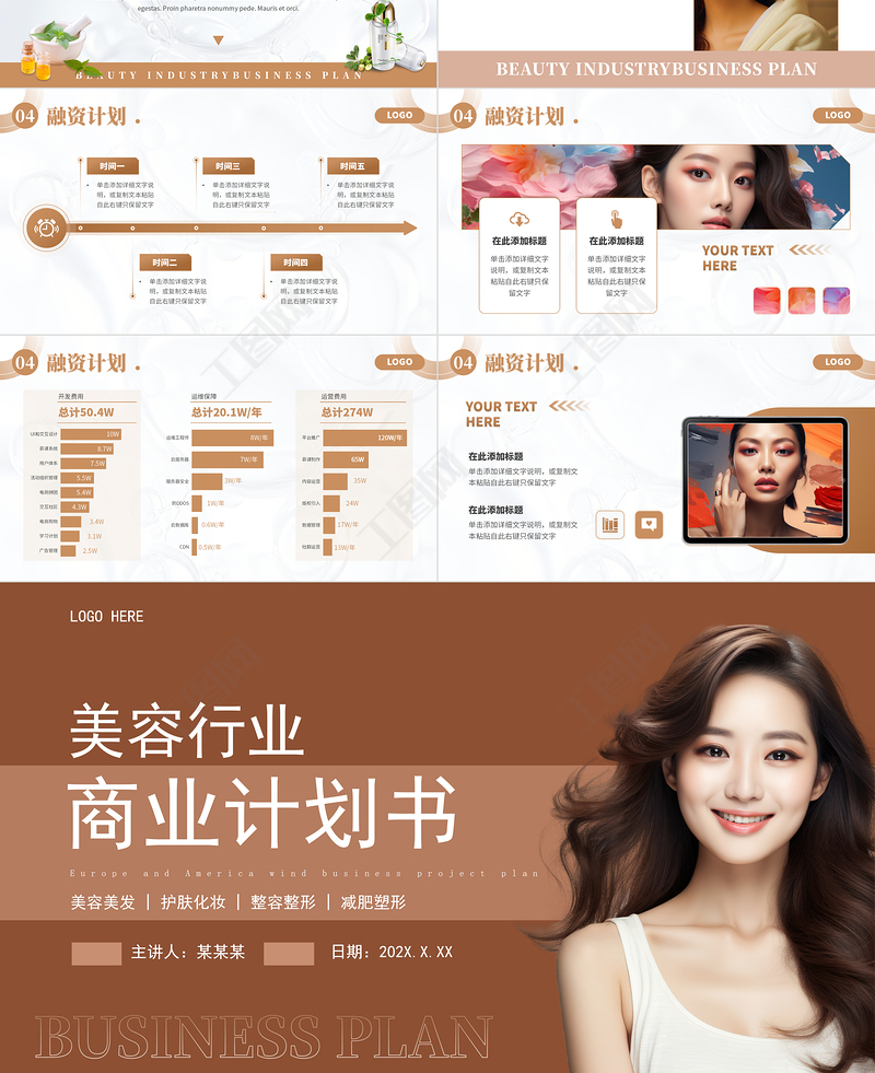 商業(yè)計(jì)劃書PPT美拉德風(fēng)美容行業(yè)模板