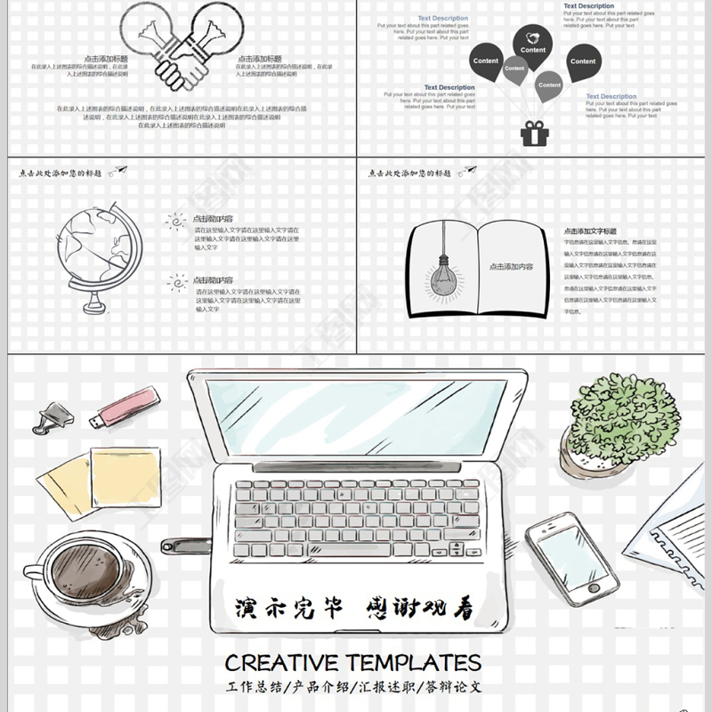 手繪風格工作總結(jié)匯報計劃PPT Array