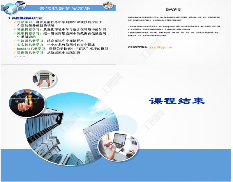版權(quán)聲明感謝您下載辦圖網(wǎng)平臺(tái)上提供的PPT作品,為了您和辦圖網(wǎng)以及原創(chuàng)作者的利益,請(qǐng)勿復(fù)制、傳播、銷售,否則將承擔(dān)法律責(zé)任!辦圖網(wǎng)將對(duì)作品進(jìn)行維權(quán),按照傳播下載次數(shù)進(jìn)行十倍的索取賠償!1.在辦圖網(wǎng)出售的PPT模板是免版稅類(RF:Royalty-Free)正版受《中國(guó)人民共和國(guó)著作法》和《世界版權(quán)公約》的保護(hù),作品的所有權(quán)、版權(quán)和著作權(quán)歸辦圖網(wǎng)所有,您下載的是PPT模板素材的使用權(quán)。2.不得將辦圖網(wǎng)的PPT模板、PPT素材,本身用于再出售,或者出租、出借、轉(zhuǎn)讓、分銷、發(fā)布或者作為禮物供他人使用,不得轉(zhuǎn)授權(quán)、出賣、轉(zhuǎn)讓本協(xié)議或者本協(xié)議中的權(quán)利。更多精品PPT模板:www.888ppt.com