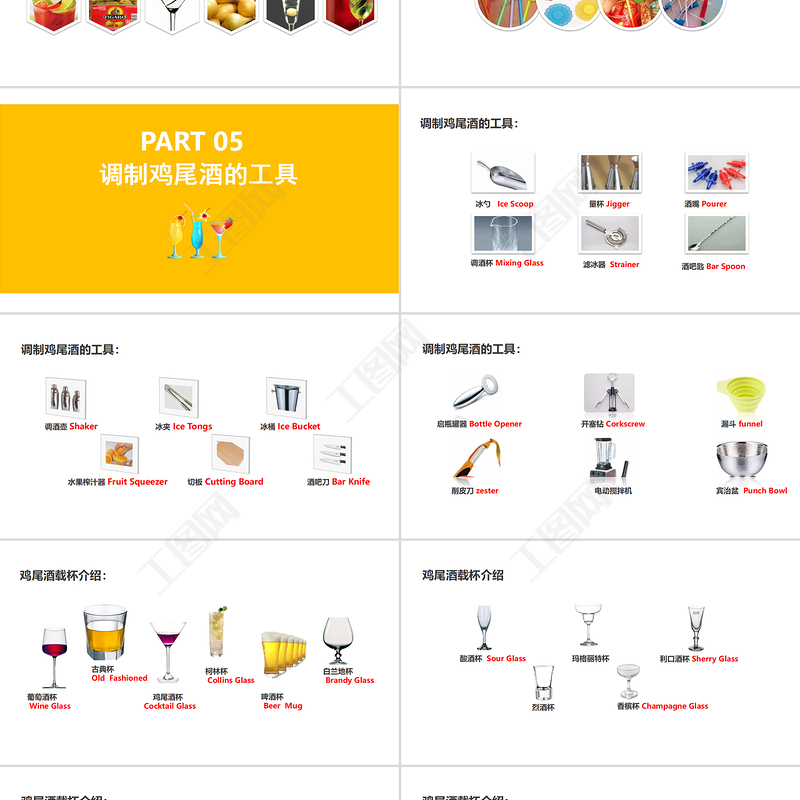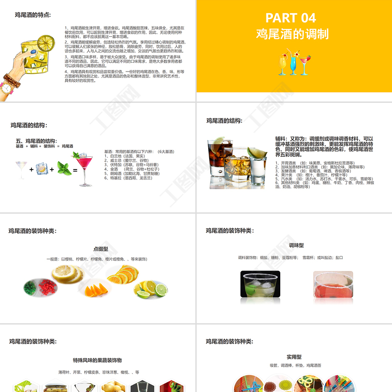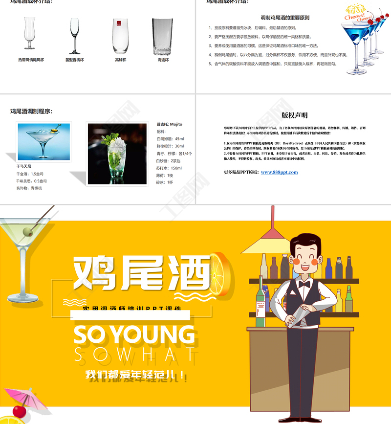 工圖網(wǎng)提供清新夏日雞尾酒實用調(diào)酒師培訓課件PPT模板供會員免費下載。更多精彩黨課PPT素材,盡在工圖網(wǎng)。