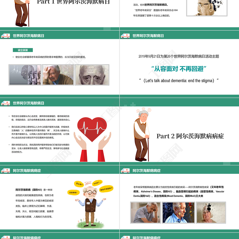 2022世界阿爾茨海默癥宣傳日PPT清新簡約關(guān)愛老人預(yù)防PPT模板下載