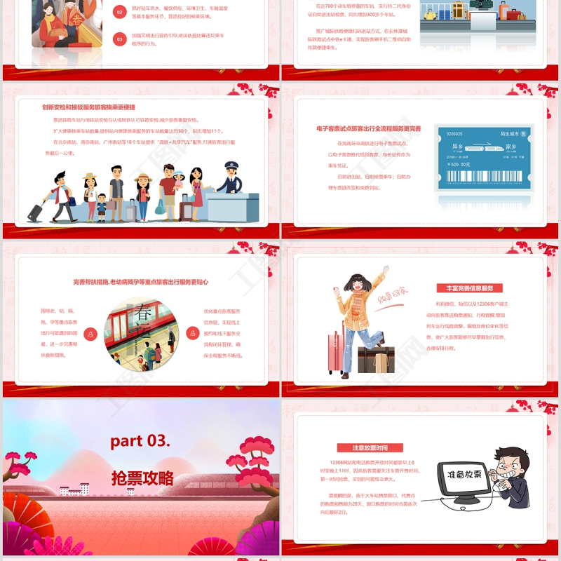 喜慶、動態(tài)風(fēng)格設(shè)計,以紅色為背景底色,加上風(fēng)為裝飾元素,包含春運(yùn)回家、春運(yùn)、搶票、介紹、回家,春運(yùn)回家PPT、春運(yùn)PPT、搶票PPT、介紹PPT、回家PPT Array