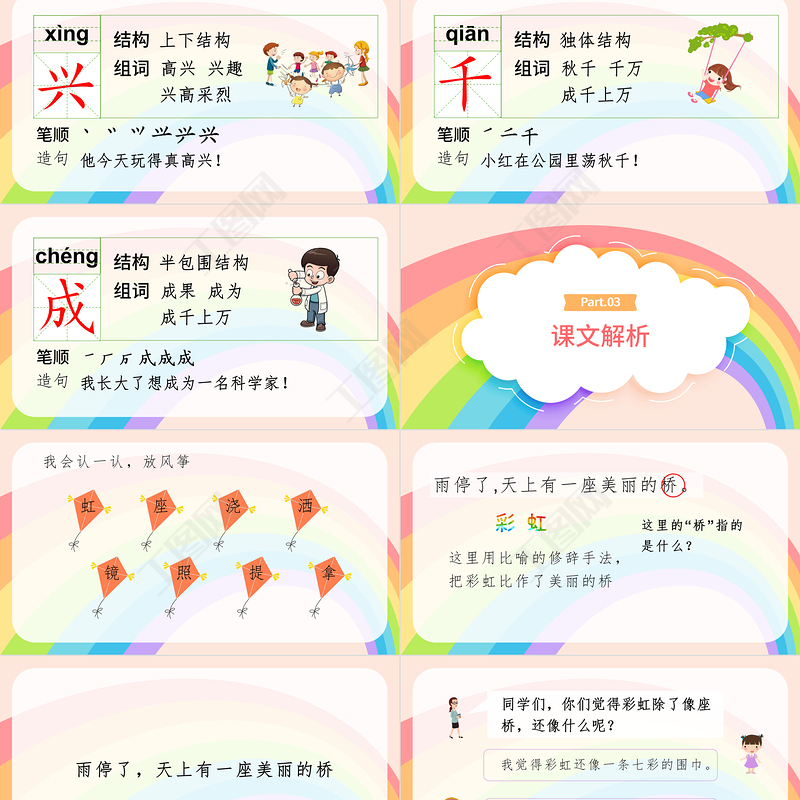 2022彩虹PPT卡通風課文第11課小學(xué)一年級語文下冊人教版教學(xué)課件 Array