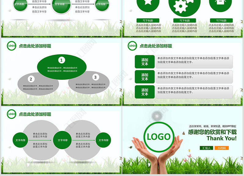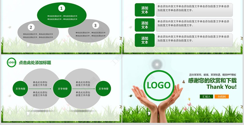 清新時(shí)尚大氣郵政儲蓄銀行郵局PPT模板幻燈片
