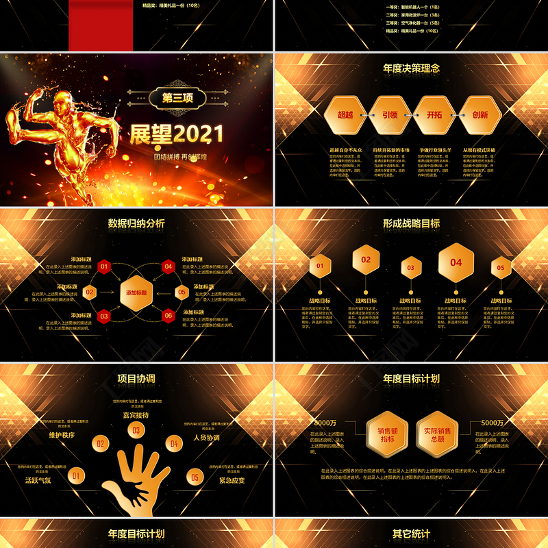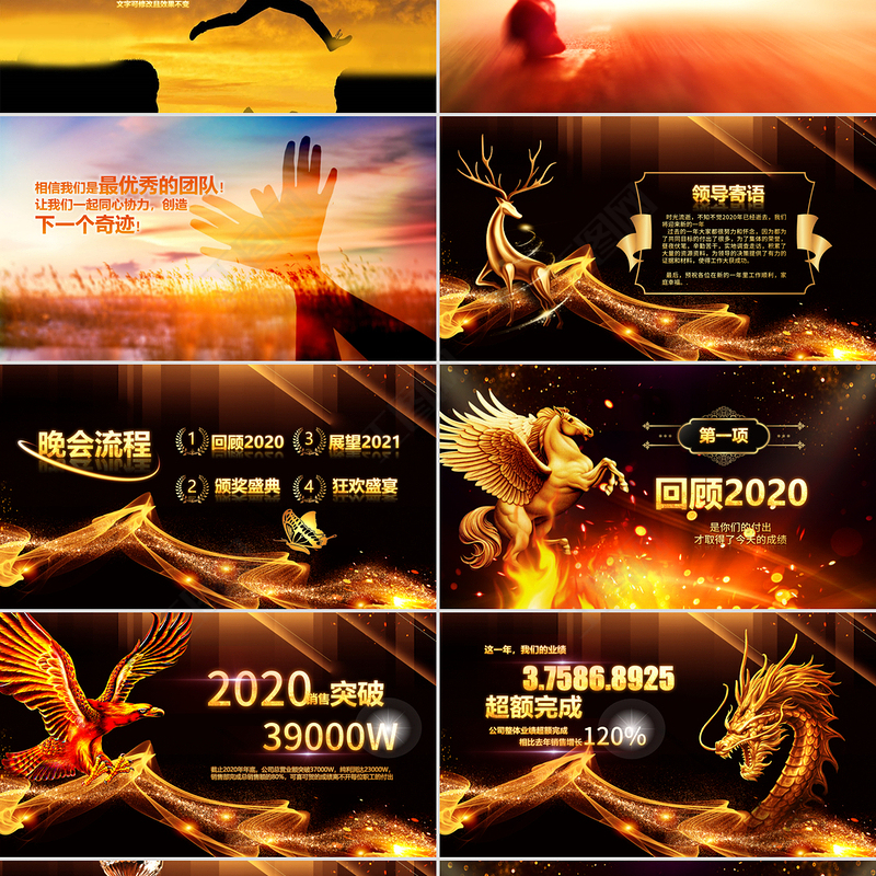 原創(chuàng)大氣跨越2020展望2021年會頒獎PPT