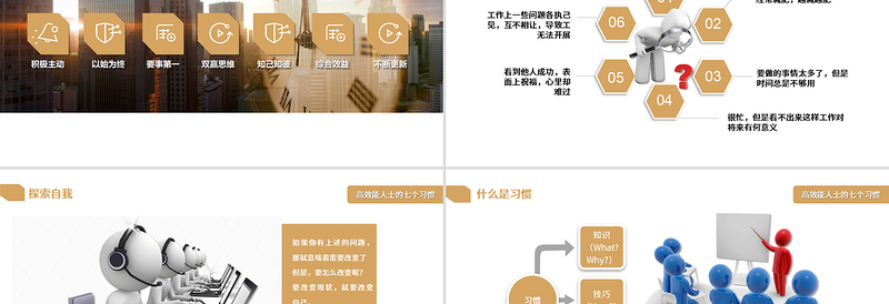 簡約 大氣 企業(yè) 職場培訓(xùn) 高效能人士 PPT模板 高效能 人士 七個習(xí)慣 養(yǎng)成習(xí)慣 成功人士 走向成功 企業(yè)發(fā)展 PPT 模板 員工 管理培訓(xùn) 企業(yè)員工 Array