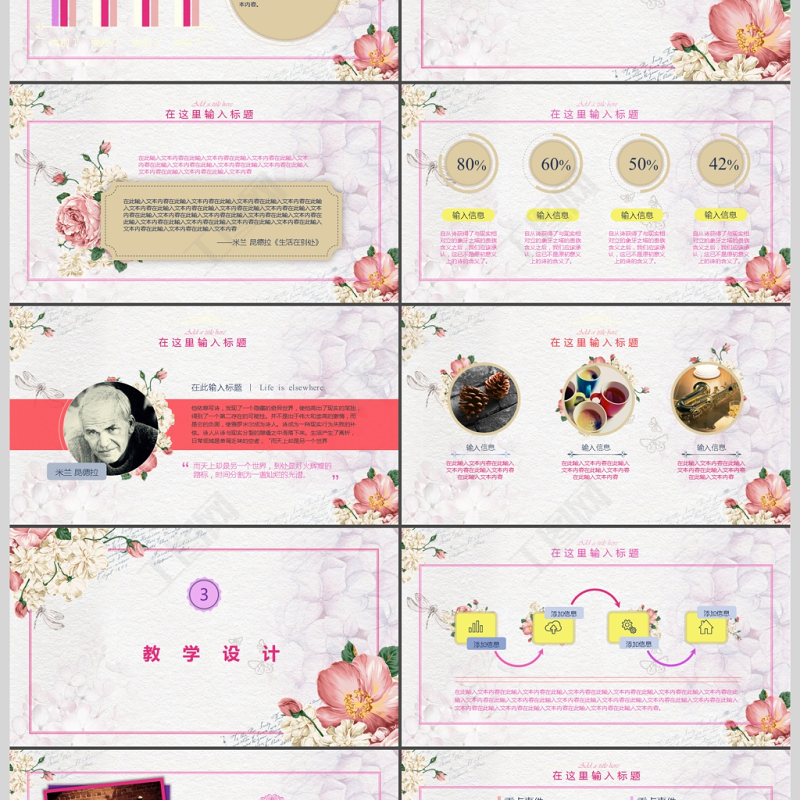 唯美水彩風(fēng)花卉女教師說課PPT課件模板 Array