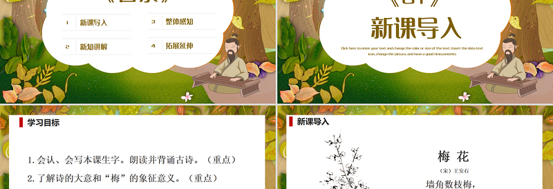 人教部編版四年級(jí)下冊(cè)語(yǔ)文PPT模板《墨梅》匯報(bào)人:辦圖網(wǎng) 時(shí)間:2022-08-03Click here to enter your text and change the color or size of the text. Insert the data text icon, change the picture, and have a good time.contents