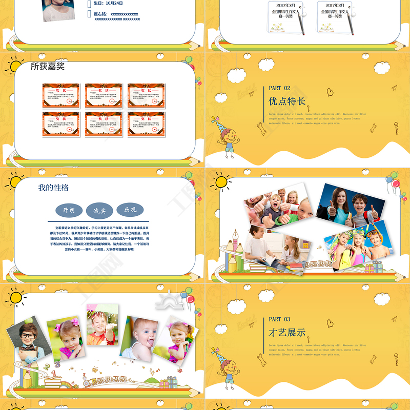 黃色,簡約,卡通,小學(xué),班委競選,ppt模板 Array