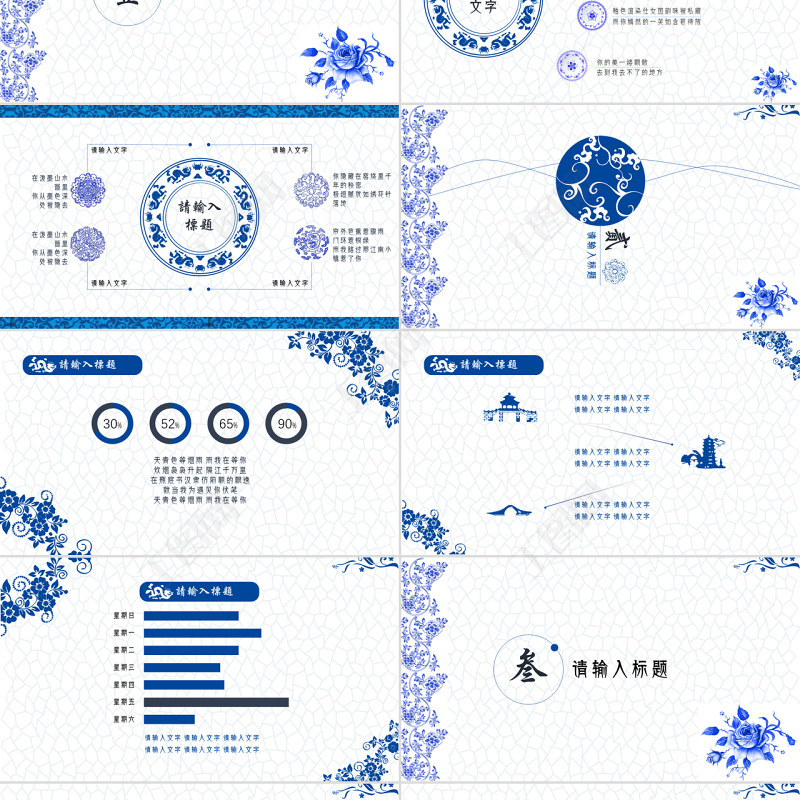 2017藍色青花瓷工匠精神黨課ppt模板包含