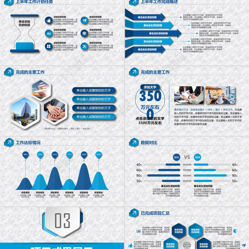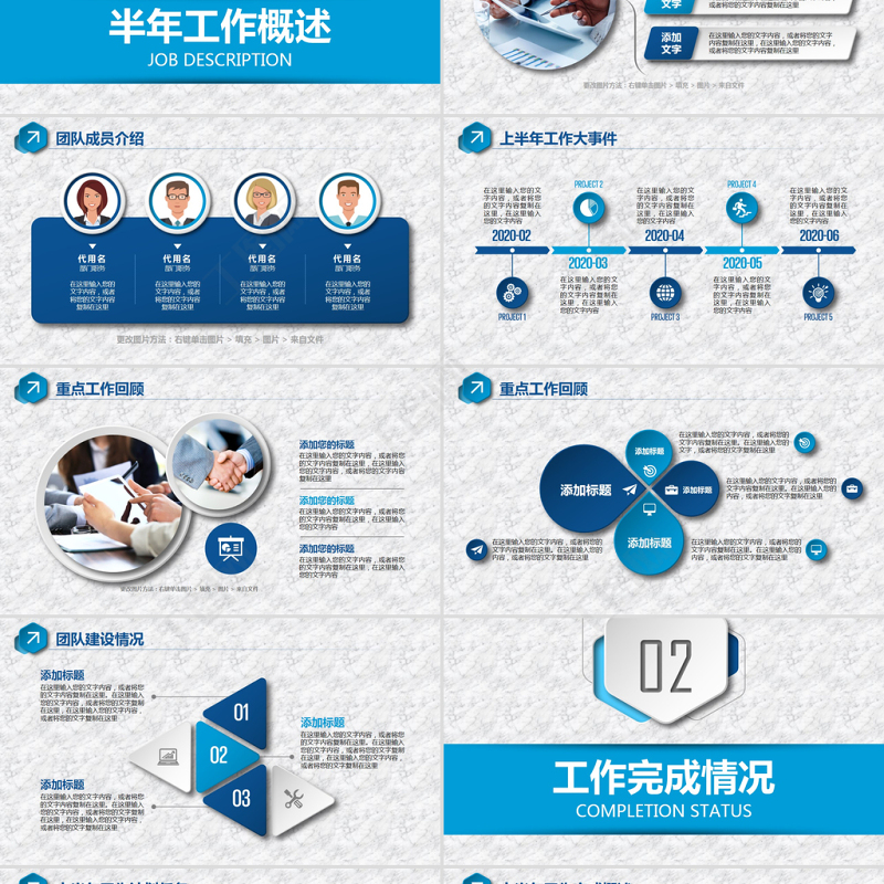 <p>2019 HALF YEAR WORK SUMMARY PPT, THE COPYRIGHT BELONGS TO THE AUTHOR, ANY UNIT OR INDIVIDUAL SHALL COMPLY WITH PROVISIONS OF THE COPYRIGHT LAW AND OTHER RELEVANT LAWS, SHALL NOT INFRINGE THE RIGHTS OF HUMAN RIGHTS, WILL NOT WORK FOR ANY FORM OF COMMERCIAL USE.BUSINESS POWERPOINT半年工作總結(jié)匯報2021匯報人:辦圖網(wǎng) 時間:2021/01/31</p><br><p>2020上半年,在全體同事的共同努力下,在公司領(lǐng)導的全面支持、關(guān)心下,本著一切為客戶服務(wù)的宗旨,圍繞優(yōu)化服務(wù)、拓展銷售和產(chǎn)品優(yōu)化三個方面,我們激流勇進,圓滿地完成了工作任務(wù),同時也提高了企業(yè)的知名度,實現(xiàn)了公司利益最大化。 在不斷前行的路上,我們也查找到工作中的不足和問題,主要反映于產(chǎn)品的風格、定型還有待進一步探索,尤其是線上銷售的產(chǎn)品,還有很大的改進和完善空間。下半年,我們將繼續(xù)努力,力爭各項工作更上一個新臺階。更改圖片方法:右鍵單擊圖片 > 填充 > 圖片 > 來自文件前 言 PREFACE</p><br><p>CONTENTS目錄</p><br><p>01半年工作概述JOB DESCRIPTION</p><br><p>上半年工作概況添加文字在這里輸入您的文字內(nèi)容,或者將您的文字內(nèi)容復制在這里,在這里輸入您的文字內(nèi)容,或者將您的文字內(nèi)容復制在這里在這里輸入您的文字內(nèi)容,或者將您的文字內(nèi)容復制在這里,在這里輸入您的文字內(nèi)容,或者將您的文字內(nèi)容復制在這里添加文字添加文字在這里輸入您的文字內(nèi)容,或者將您的文字內(nèi)容復制在這里,在這里輸入您的文字內(nèi)容,或者將您的文字內(nèi)容復制在這里更改圖片方法:右鍵單擊圖片 > 填充 > 圖片 > 來自文件</p><br><p>團隊成員介紹代用名部門職務(wù)在這里輸入您的文字內(nèi)容,或者將您的文字內(nèi)容復制在這里代用名部門職務(wù)在這里輸入您的文字內(nèi)容,或者將您的文字內(nèi)容復制在這里代用名部門職務(wù)在這里輸入您的文字內(nèi)容,或者將您的文字內(nèi)容復制在這里代用名部門職務(wù)在這里輸入您的文字內(nèi)容,或者將您的文字內(nèi)容復制在這里更改圖片方法:右鍵單擊圖片 > 填充 > 圖片 > 來自文件</p><br><p>上半年工作大事件PROJECT 1PROJECT 2PROJECT 4PROJECT 3PROJECT 52020-022020-032020-052020-042020-06在這里輸入您的文字內(nèi)容,或者將您的文字內(nèi)容復制在這里,在這里輸入您的文字內(nèi)容在這里輸入您的文字內(nèi)容,或者將您的文字內(nèi)容復制在這里,在這里輸入您的文字內(nèi)容在這里輸入您的文字內(nèi)容,或者將您的文字內(nèi)容復制在這里,在這里輸入您的文字內(nèi)容在這里輸入您的文字內(nèi)容,或者將您的文字內(nèi)容復制在這里,在這里輸入您的文字內(nèi)容在這里輸入您的文字內(nèi)容,或者將您的文字內(nèi)容復制在這里,在這里輸入您的文字內(nèi)容</p><br><p>重點工作回顧在這里輸入您的文字內(nèi)容,或者將您的文字內(nèi)容復制在這里,在這里輸入您的文字內(nèi)容,或者將您的文字內(nèi)容復制在這里添加您的標題在這里輸入您的文字內(nèi)容,或者將您的文字內(nèi)容復制在這里,在這里輸入您的文字內(nèi)容添加您的標題在這里輸入您的文字內(nèi)容,或者將您的文字內(nèi)容復制在這里,在這里輸入您的文字內(nèi)容添加您的標題更改圖片方法:右鍵單擊圖片 > 填充 > 圖片 > 來自文件</p><br><p>重點工作回顧在這里輸入您的文字內(nèi)容,或者將您的文字內(nèi)容復制在這里。在這里輸入您的內(nèi)容,或者將您的文字復制在這里在這里輸入您的文字內(nèi)容,或者將您的文字內(nèi)容復制在這里。在這里輸入您的文字,或者將您的文字復制在這里在這里輸入您的文字內(nèi)容,或者將您的文字內(nèi)容復制在這里。在這里輸入您的內(nèi)容,或者將您的文字復制在這里添加標題添加標題添加標題添加標題在這里輸入您的文字內(nèi)容,或者將您的文字內(nèi)容復制在這里。在這里輸入您的內(nèi)容,或者將您的文字復制在這里</p><br><p>團隊建設(shè)情況添加標題在這里輸入您的文字內(nèi)容,或者將您的文字內(nèi)容復制在這里。在這里輸入您的文字內(nèi)容,或者將您的文字復制在這里,在這里輸入您的文字內(nèi)容,或者將您的文字復制在這里010302添加標題在這里輸入您的文字內(nèi)容,或者將您的文字內(nèi)容復制在這里。在這里輸入您的文字內(nèi)容,或者將您的文字復制在這里,在這里輸入您的文字內(nèi)容,或者將您的文字復制在這里添加標題在這里輸入您的文字內(nèi)容,或者將您的文字內(nèi)容復制在這里。在這里輸入您的文字內(nèi)容,或者將您的文字復制在這里,在這里輸入您的文字內(nèi)容,或者將您的文字復制在這里</p><br><p>02工作完成情況COMPLETION STATUS</p><br><p>上半年工作計劃任務(wù)單擊添加您的標題在這里輸入您的文字內(nèi)容,或者將您的文字內(nèi)容復制在這里在這里輸入您的文字內(nèi)容添加您的標題在這里輸入您的文字內(nèi)容,或者將您的文字內(nèi)容復制在這里在這里輸入您的文字內(nèi)容添加您的標題在這里輸入您的文字內(nèi)容,或者將您的文字內(nèi)容復制在這里在這里輸入您的文字內(nèi)容添加您的標題在這里輸入您的文字內(nèi)容,或者將您的文字內(nèi)容復制在這里在這里輸入您的文字內(nèi)容添加您的標題在這里輸入您的