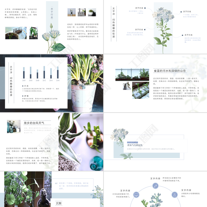 清新簡潔植物手繪通用ppt模板 Array