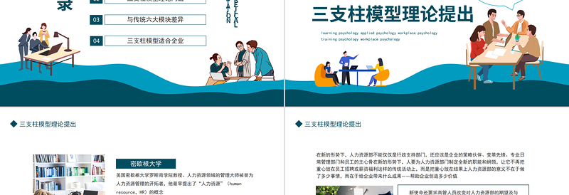 三支柱模型理論內(nèi)涵與傳統(tǒng)六大模塊差異learning psychology applied psychology workplace psychology training learning psychology workplace psychology宣講人:某某某 時(shí)間:20XX.XXHR三支柱模型
