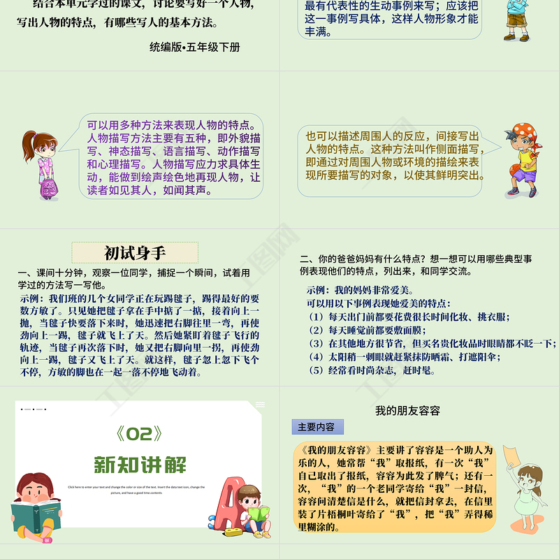 人教部編版五年級(jí)下冊(cè)語文PPT模板《語文園地五》匯報(bào)人:辦圖網(wǎng) 時(shí)間:XXXXXClick here to enter your text and change the color or size of the text. Insert the data text icon, change the picture, and have a good time.contents辦圖網(wǎng)www.888ppt.com