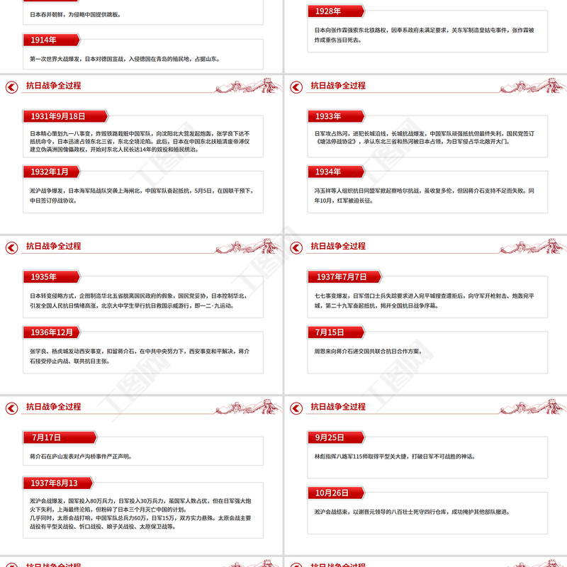工圖網(wǎng)提供抗日戰(zhàn)爭全過程PPT紀(jì)念抗戰(zhàn)勝利80周年專題課件供會員免費下載。更多精彩黨課PPT素材,盡在工圖網(wǎng)。