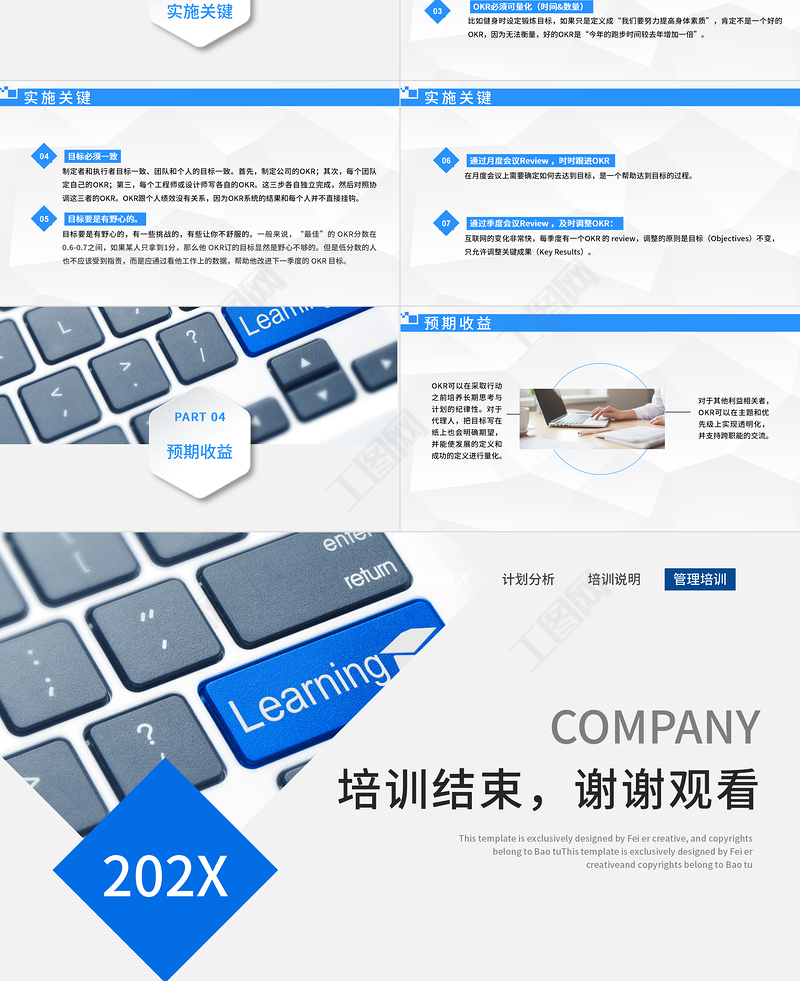 工圖網(wǎng)提供企業(yè)培訓(xùn)之OKR工作法目標(biāo)與關(guān)鍵結(jié)果法PPT模板供會員免費(fèi)下載。更多精彩黨課PPT素材,盡在工圖網(wǎng)。
