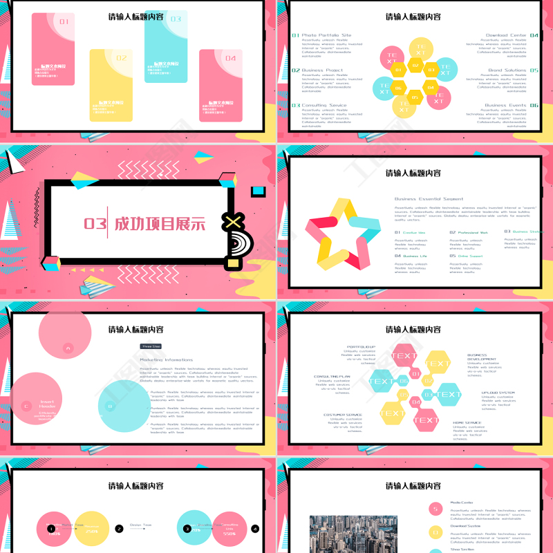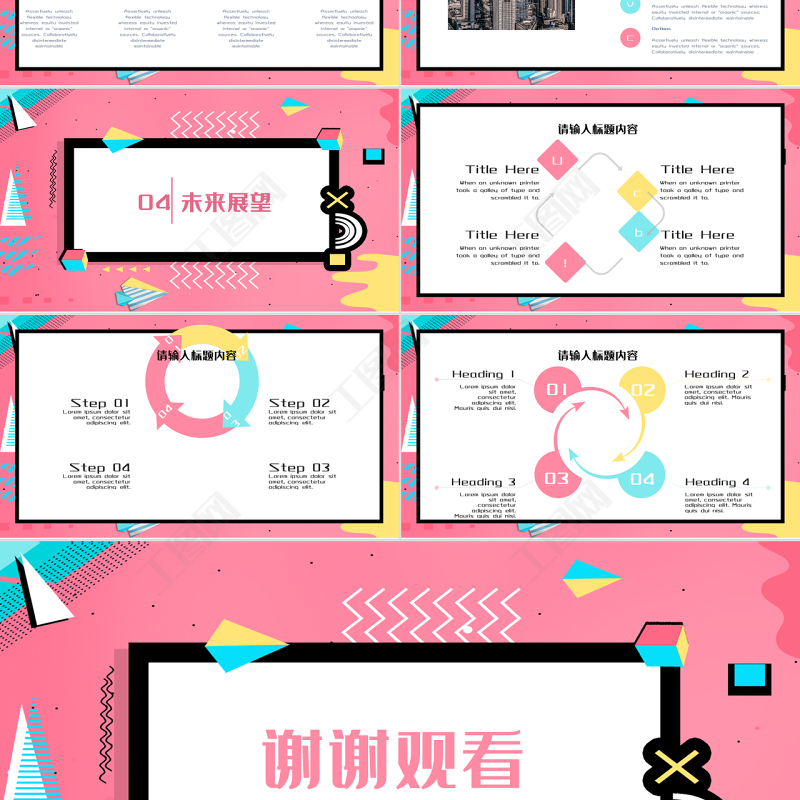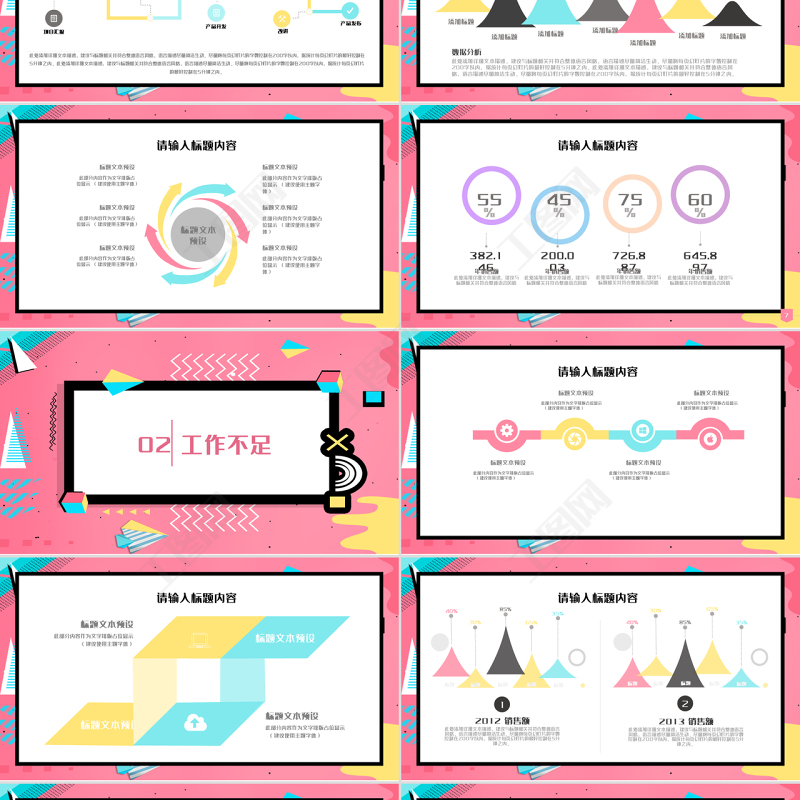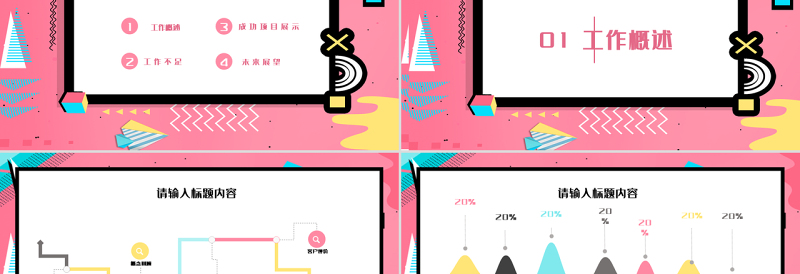 孟菲斯 孟菲斯風格 幾何風格 幾何線條 PPT模板 工作 工作匯報 匯報工作 匯報總結 總結匯報 Array
