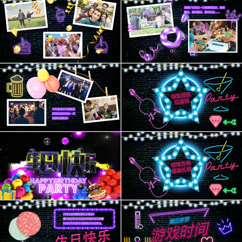 炫酷視頻片頭創(chuàng)意霓虹燈公司員工生日快樂生日會PPT祝福賀卡party