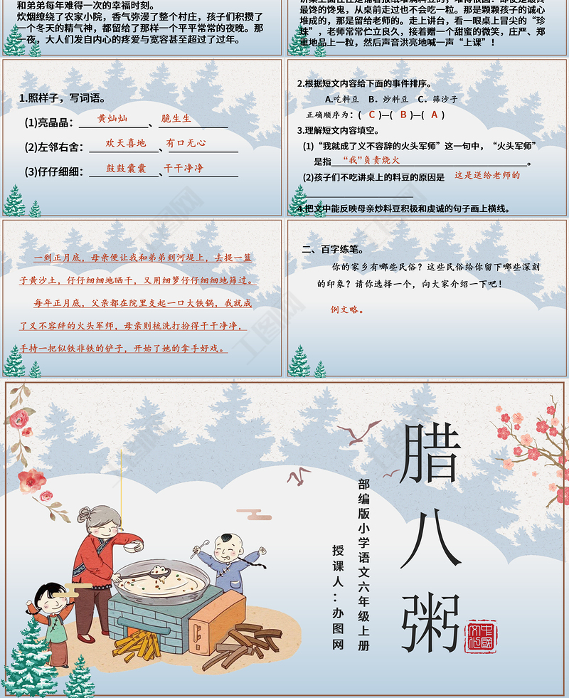 臘八粥部編版小學(xué)語文六年級上冊授課人:辦圖網(wǎng)