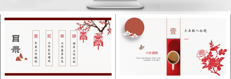2019紅色文藝剪紙中國(guó)風(fēng)商務(wù)辦公PPT模板 Array
