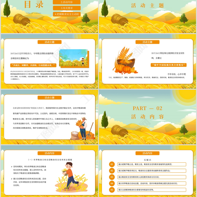 工圖網(wǎng)提供端牢中國飯碗共筑全球糧安世界糧食日宣傳周PPT模板供會員免費(fèi)下載。更多精彩黨課PPT素材,盡在工圖網(wǎng)。