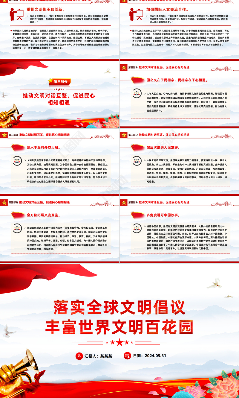 工圖網(wǎng)提供落實全球文明倡議豐富世界文明百花園PPT黨建風(fēng)深刻闡釋全球文明倡議課件供會員免費下載。更多精彩黨課PPT素材,盡在工圖網(wǎng)。