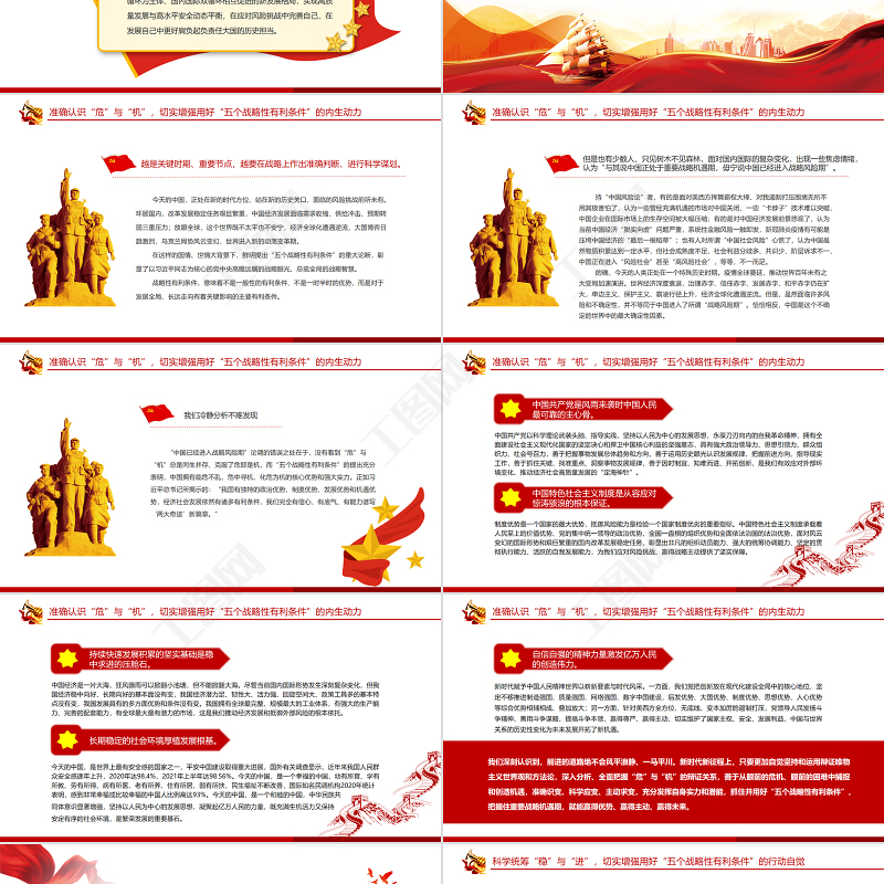工圖網(wǎng)提供切實(shí)抓住并用好“五個(gè)戰(zhàn)略性有利條件”PPT紅色黨政風(fēng)黨員干部學(xué)習(xí)教育專題黨課課件模板供會員免費(fèi)下載。更多精彩黨課PPT素材,盡在工圖網(wǎng)。
