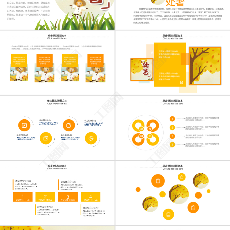 工圖網(wǎng)提供原創(chuàng)金秋豐收季節(jié)秋天秋季二十四節(jié)氣處暑PPT模板-版權(quán)可商用供會(huì)員免費(fèi)下載。更多精彩黨課PPT素材,盡在工圖網(wǎng)。