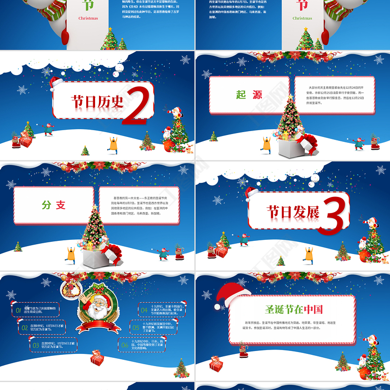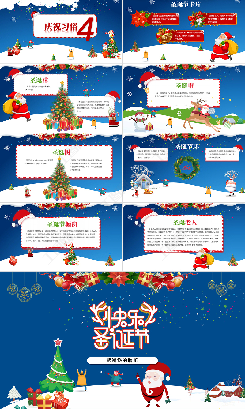 圣誕節(jié)Christmas 大部分的天主教教堂都會先在12月24日的平安夜,亦即12月25日凌晨舉行子夜彌撒,而一些基督教會則會舉行報佳音,然后在12月25日慶祝圣誕節(jié);基督教的另一大分支——東正教的圣誕節(jié)慶則在每年的1月7日。圣誕節(jié)也是西方世界以及其他很多地區(qū)的公共假日,例如:在亞洲的中國香港和澳門地區(qū)、馬來西亞、新加坡。02