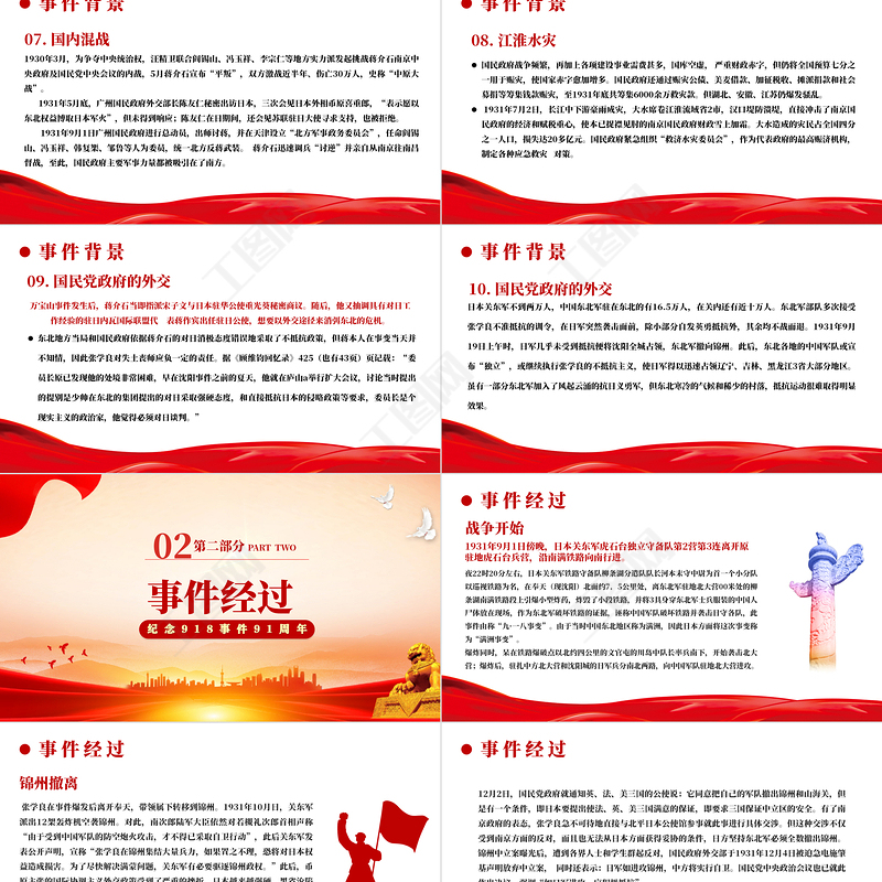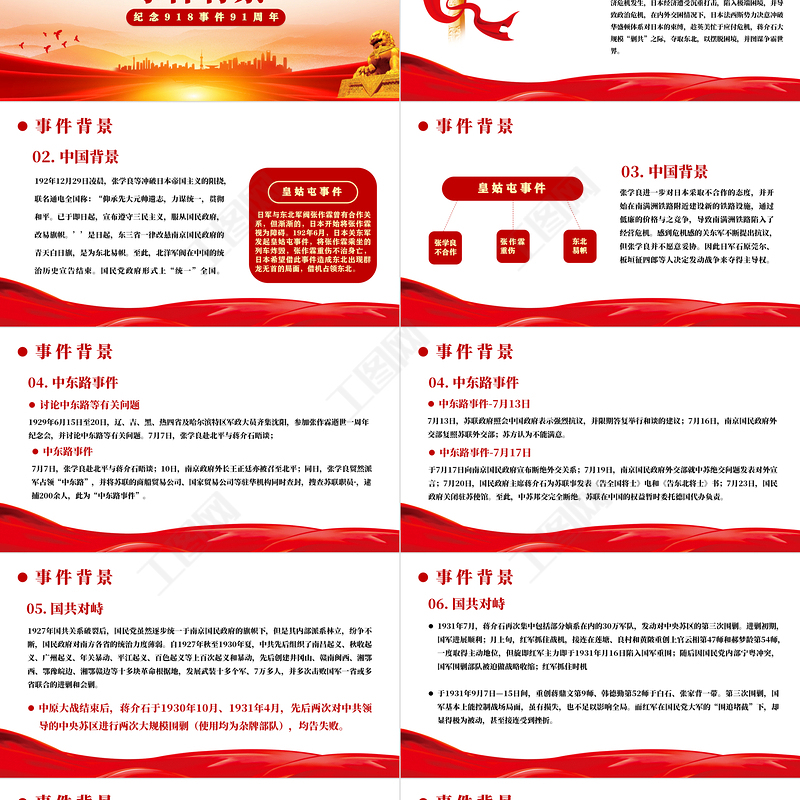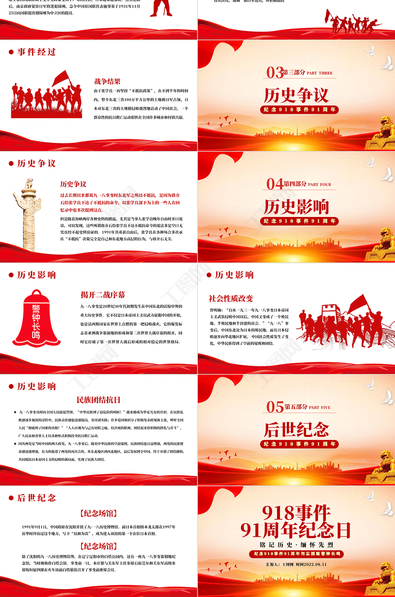 工圖網(wǎng)提供918事件91周年紀(jì)念日PPT黨政風(fēng)紀(jì)念918事件91周年勿忘國恥警鐘長鳴黨課課件模板供會(huì)員免費(fèi)下載。更多精彩黨課PPT素材,盡在工圖網(wǎng)。