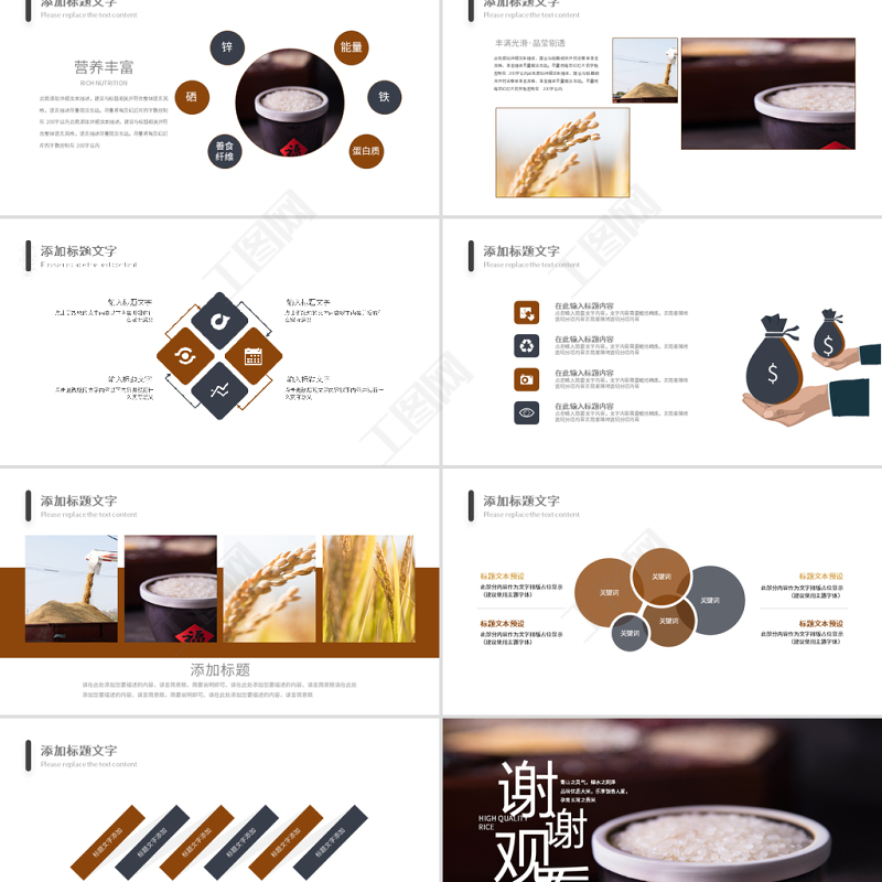 原創(chuàng)稻田水稻有機(jī)綠色大米農(nóng)業(yè)豐收PPT模板-版權(quán)可商用