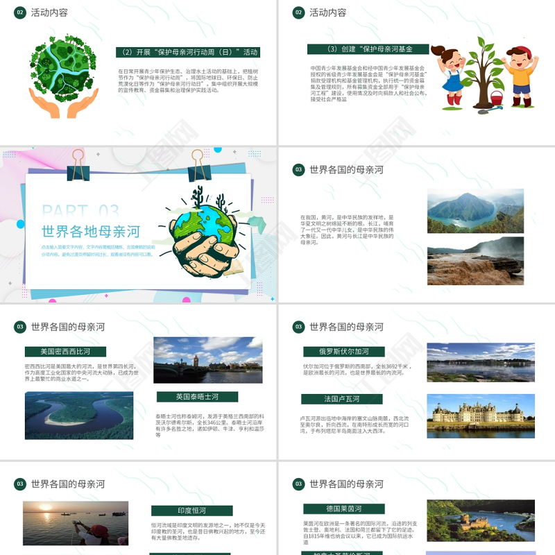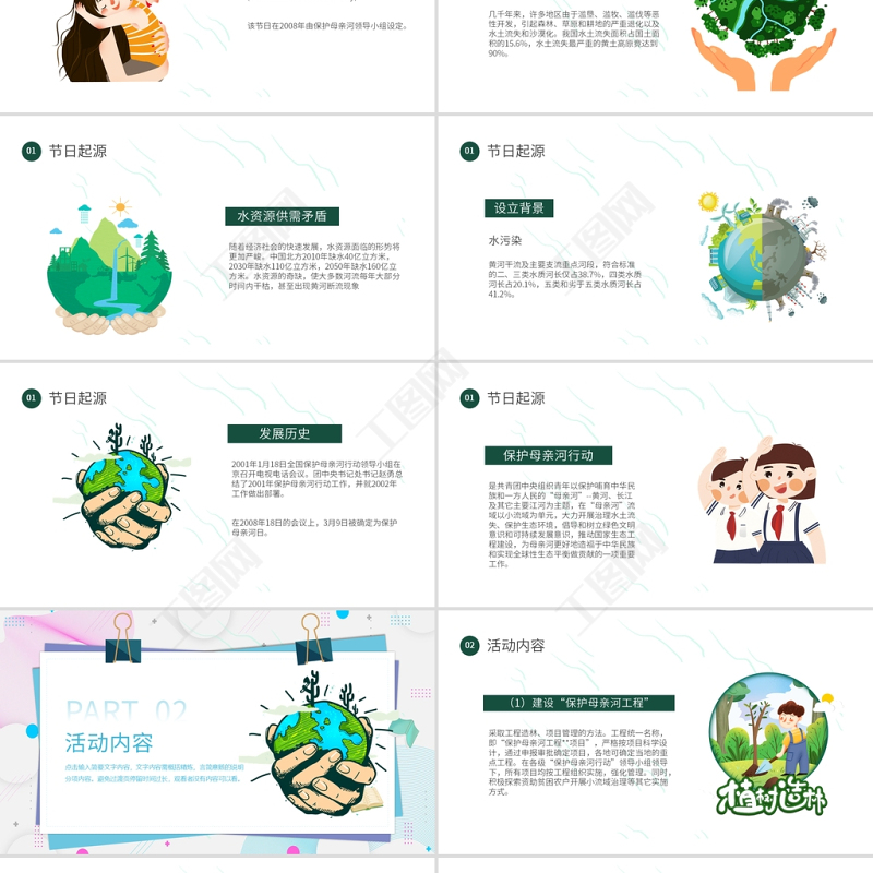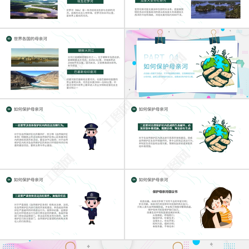 工圖網(wǎng)提供保護母親河日PPT卡通同飲一江水保護母親河教育主題班會模板供會員免費下載。更多精彩黨課PPT素材,盡在工圖網(wǎng)。