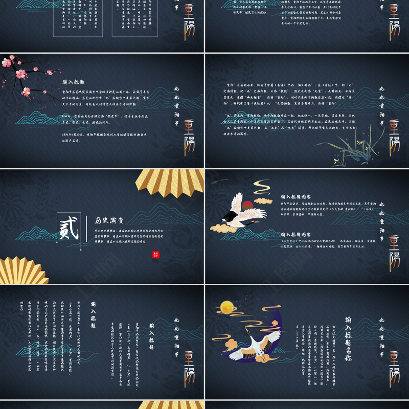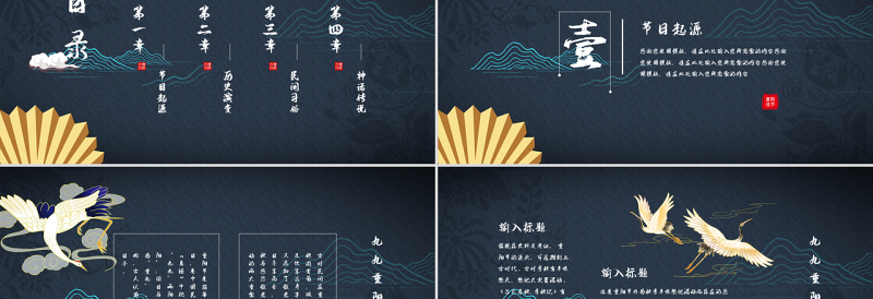 藍(lán)色,撞色,中國風(fēng),重陽節(jié),傳統(tǒng)節(jié)日,節(jié)日慶典,古風(fēng),古典,國潮,九月初九,主題,PPT,模板 Array