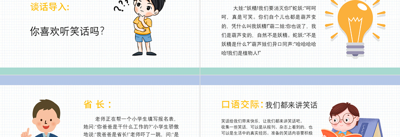 首頁 > PPT模板 > 教學(xué)課件 > 2022我們都來講笑話PPT口語交際小學(xué)五年級語文下冊部編人教版教學(xué)課件.PPTX 【圖片、文字、動(dòng)畫均可編輯】