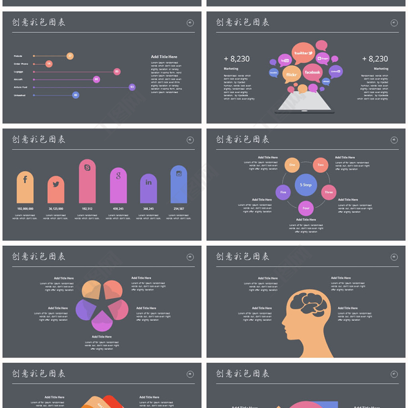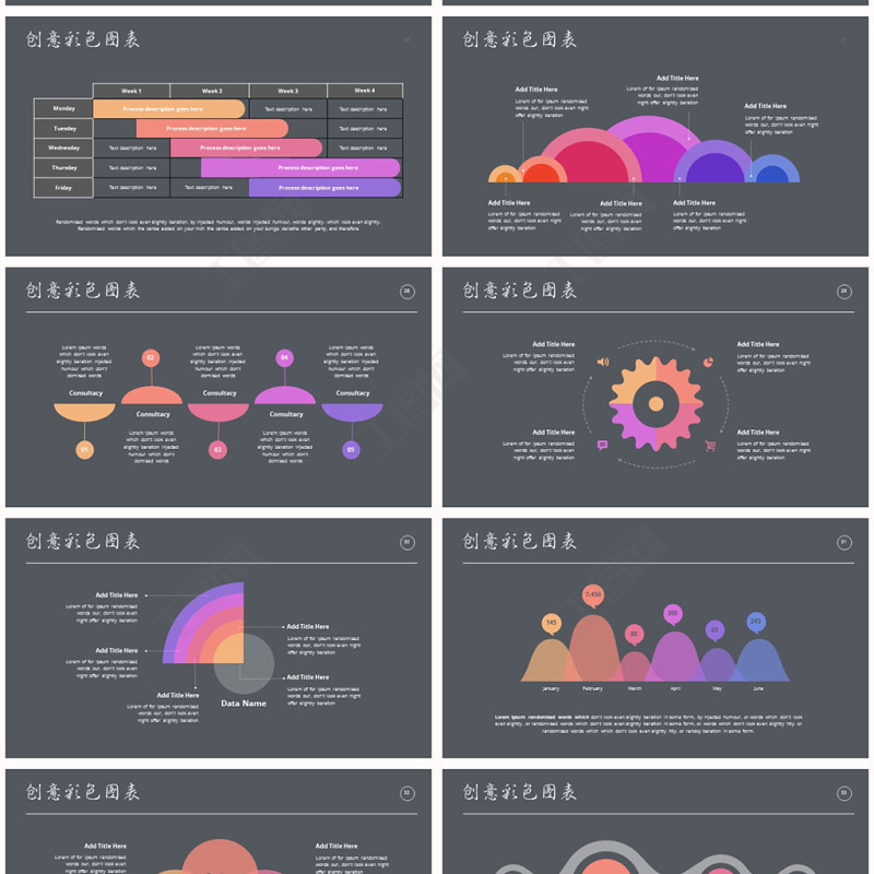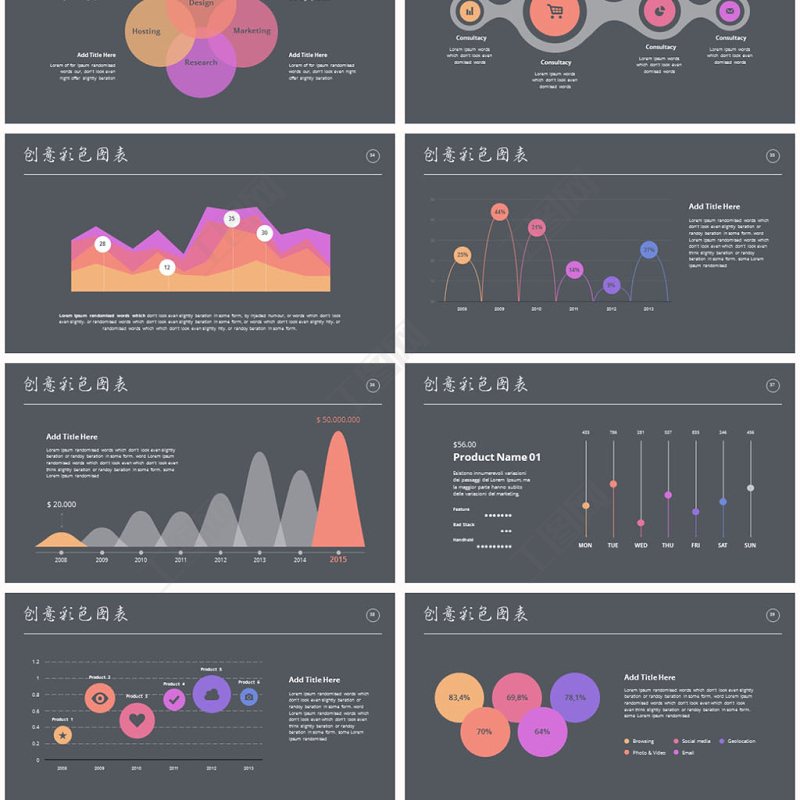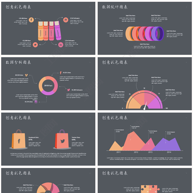 彩色動(dòng)態(tài)商務(wù)圖表數(shù)據(jù)分析ppt圖表模板 Array
